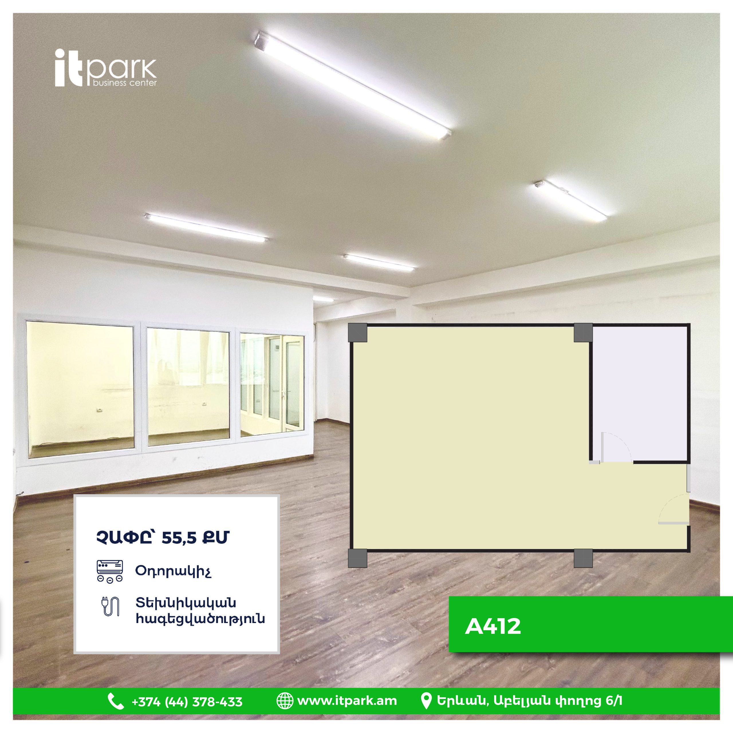 Գրասենյակի ընդհանուր մակերեսը՝ 55.5 քմ: Ունի երկու առանձնացված գրասենյակ, վերանորոգումը կկատարվի կարճ ժամանակահատվածում։